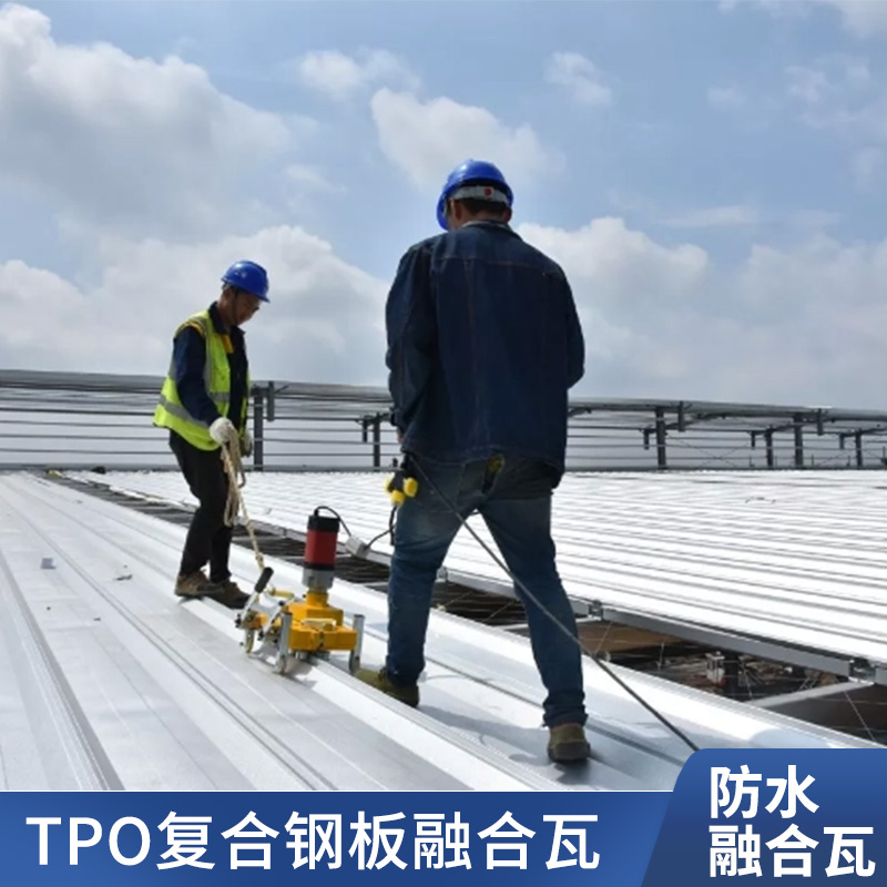 TPO/PVC鋼塑復(fù)合防水瓦以鋼板為基板,表面貼覆具有防水防腐功能的TPO/PVC卷材(熱塑性聚烯烴類防水卷材),是一款防水防腐屋面建筑材料。TPO/PVC鋼塑復(fù)合防水瓦主要特點(diǎn)就是在各類環(huán)境下不易生銹不易漏水,使用熱風(fēng)焊接進(jìn)行相連,覆蓋全部裸露的縫隙,在使用過程中可以達(dá)到蓄水不滲透的效果,防水效果好,同時(shí)還有較好的抗風(fēng)揭性能和耐老化性