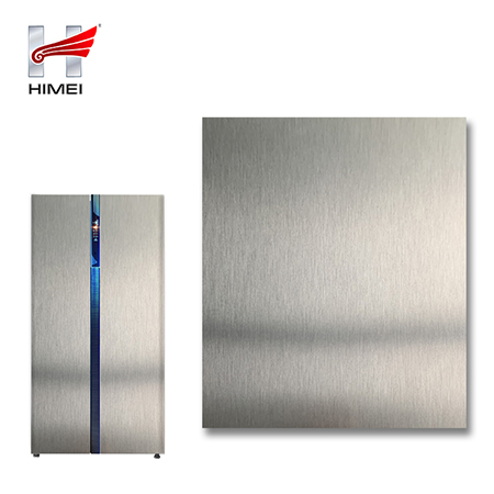 家電用覆膜鋼板,就是鋼板的基材上面覆了一層PET膜/PVC膜,然后通過覆合貼覆而成,主要應用在各類家電外殼裝飾上,例如冰箱、洗衣機、電飯煲等外殼部件。覆膜是一種物理工藝,一層膜一層鋼板經過高溫高壓壓合而成。