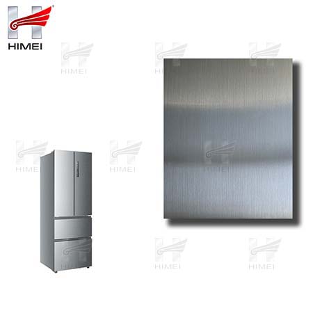 家電用覆膜鋼板,就是鋼板的基材上面覆了一層PET膜/PVC膜,然后通過覆合貼覆而成,主要應用在各類家電外殼裝飾上,例如冰箱、洗衣機、電飯煲等外殼部件。覆膜是一種物理工藝,一層膜一層鋼板經過高溫高壓壓合而成。